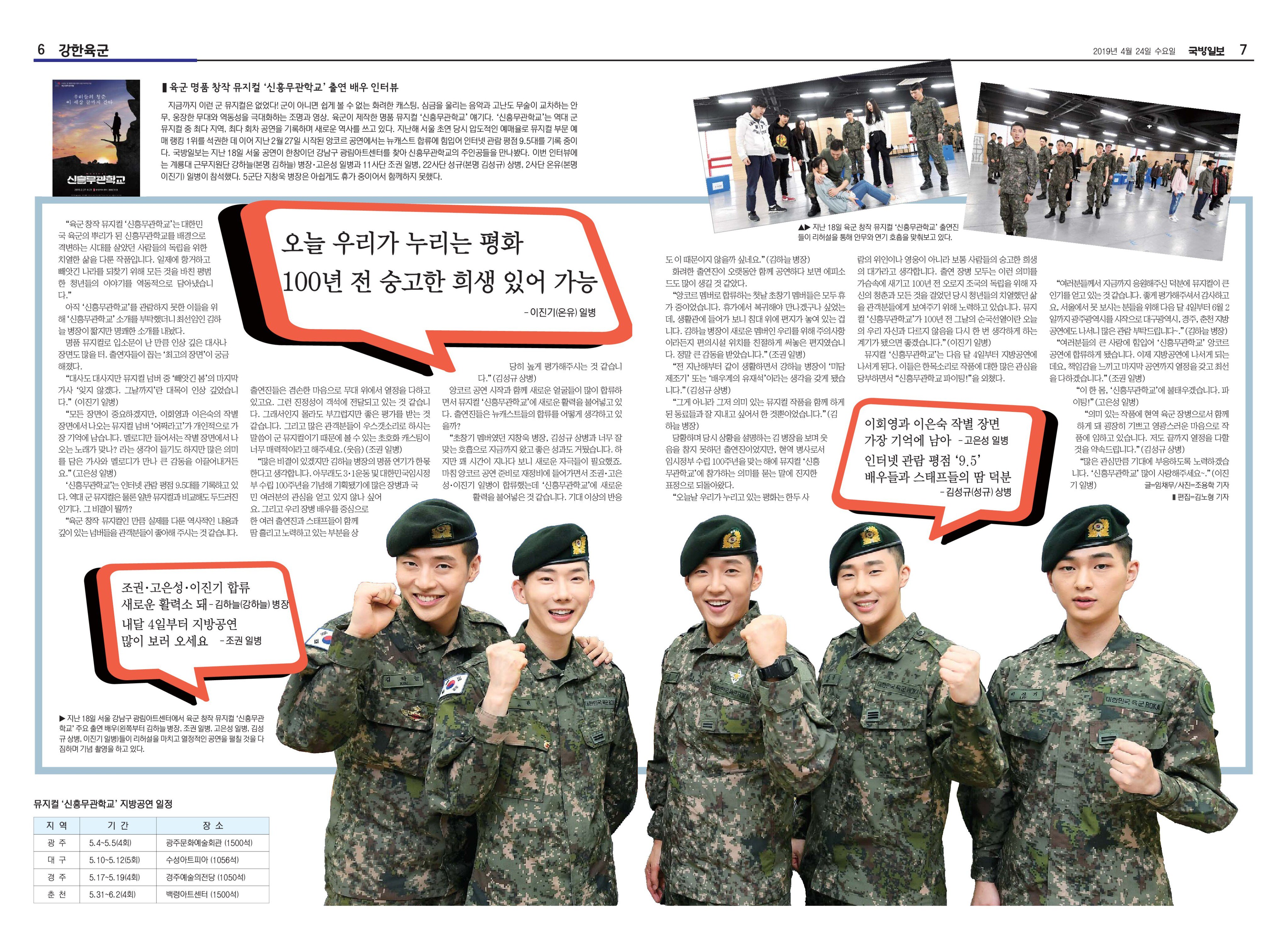 “오늘날 우리가 누리고 있는 평화는 한두 사람의 위인이나 영웅이 아니라 보통 사람들의 숭고한 희생의 대가라고 생각합니다. 출연 장병 모두는 이런 의미를 가슴속에 새기고 100년 전 오로지 조국의 독립을 위해 자신의 청춘과 모든 것을 걸었던 당시 청년들의 치열했던 삶을 관객분들에게 보여주기 위해 노력하고 있습니다. 뮤지컬 ‘신흥무관학교’가 100년 전 그날의 순국선열이란 오늘의 우리 자신과 다르지 않음을 다시 한 번 생각하게 하는 계기가 됐으면 좋겠습니다.”(이진기 일병)