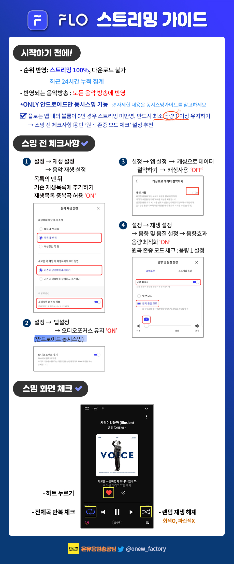 플로는 앱 내의 볼륨이 0인 경우 스트리밍 미반영, 반드시 최소 음량 1 이상 유지하기